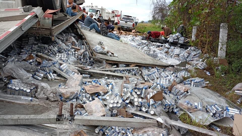 La mañana de este lunes 16 de octubre vuelca tráiler cargado de cerveza en la Súper Carretera San Luis – Rioverde y los pobladores del lugar no dejaron escapar la oportunidad de llenar sus refrigeradores con la rapiña que se realizo ante este accidente.