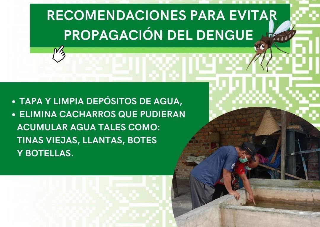 La Coordinación Estatal de Protección Civil (CEPC), en apoyo a la salud de las y los potosinos, emitió recomendaciones para evitar la proliferación del mosquito propagador del dengue, como el retiro de maleza, limpieza de patios al aire libre y eliminación de recipientes que puedan almacenar agua, debido a que se convierten en lugares de reproducción.