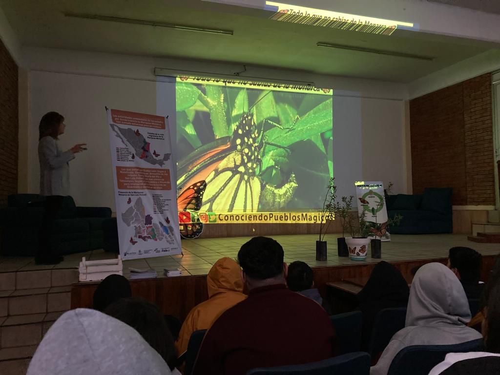 Aparte, el Centro de Estudios Tecnológicos Industrial y de Servicios – CETis 125-, pidió la plática relacionada con la Mariposa Monarca, su migración, su paso por el territorio potosino, así como para difundir la importancia de los polinizadores, la cual estuvo dirigida a más de 100 jóvenes de 1º de preparatoria.