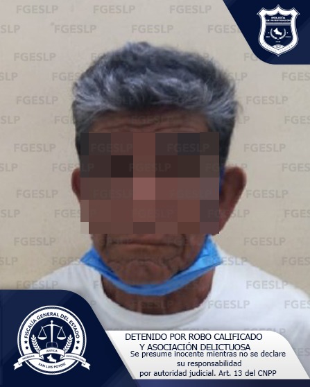 Por robo calificado y asociación delictuosa en Soledad de Graciano Sánchez, elementos de la Policía de Investigación (PDI) aprehendieron a un sujeto, informó la Fiscalía General del Estado de San Luis Potosí (FGESLP).