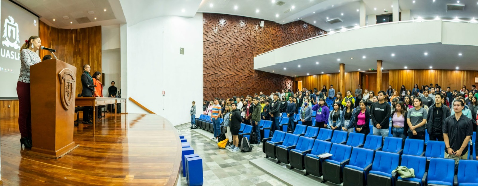 Destacó la presencia en el presídium de la Dra. Violeta Mendezcarlo Silva, coordinadora de la Licenciatura en Derecho; la Dra. Blanca Patricia Salazar Chávez, responsable del programa de Sustentabilidad en la Facultad de Contaduría y Administración; y el Mtro. Miguel Meave Llanera, docente de la Facultad de Derecho.
