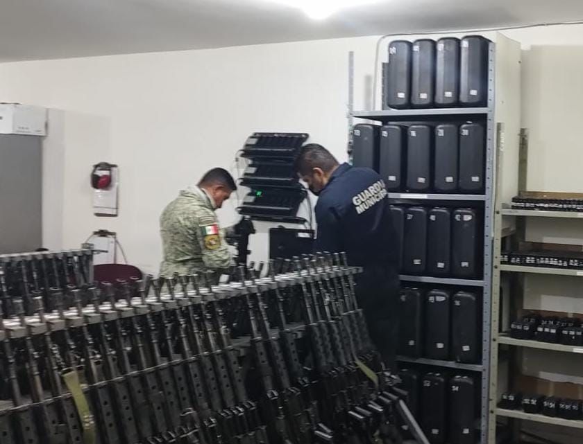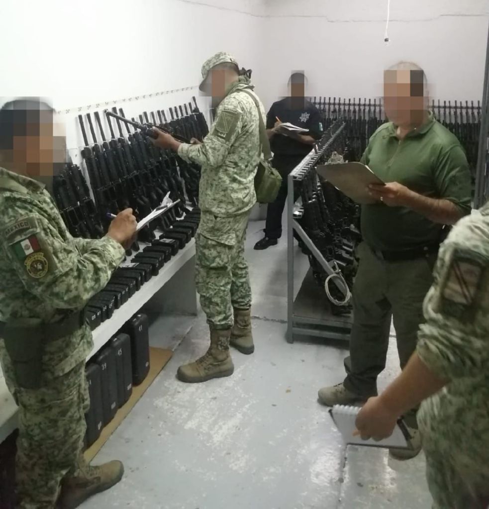Sedena y SSPE Estatal realizaron una revisión a los depósitos de armas de la Policía Municipal.