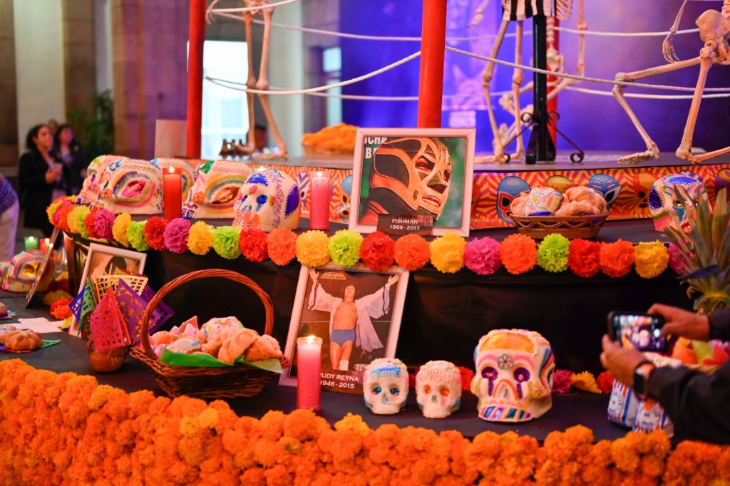 Gallardo Cardona agradeció a quienes hicieron posible el montaje del altar monumental, principalmente al personal de Palacio de Gobierno, quienes colocaron los elementos de la ofrenda tradicional como el arco, flores de cempasúchil, sal, velas y veladoras, copal, calaveritas, papel picado, comida y bebida, así como fotografías de luchadores fallecidos, como El Santo, Blue Demond, Rayo de Jalisco, El Perro Aguayo, El Apache, La Parka, entre otros. El altar podrá ser visitado de 9:00 a 21:00 horas.