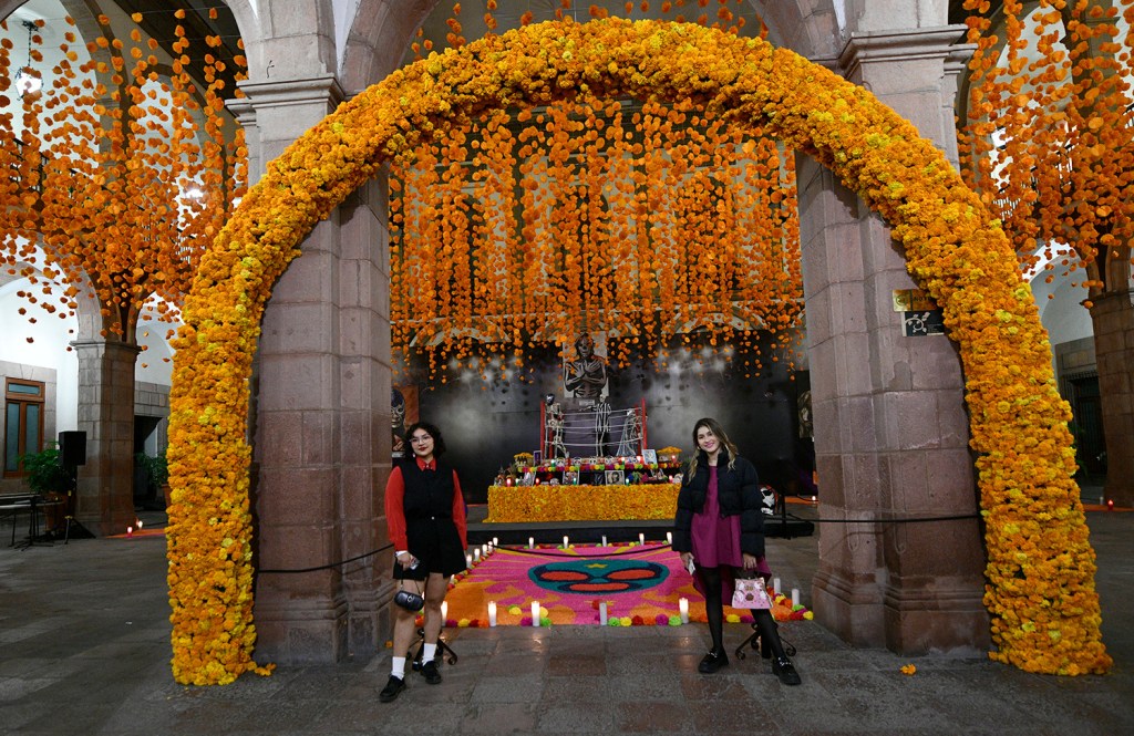 Un bello e impresionante tapiz multicolor viste al patio central de Palacio de Gobierno junto con el altar de muertos que el Gobernador Ricardo Gallardo Cardona, inauguró este miércoles y que podrá ser visitado de lunes a domingo de 9:00 a 21:00 horas en el marco del Festival Xantolo en tu Ciudad, que el próximo año despegará a París, Francia en apoyo a preservar las tradiciones potosinas.