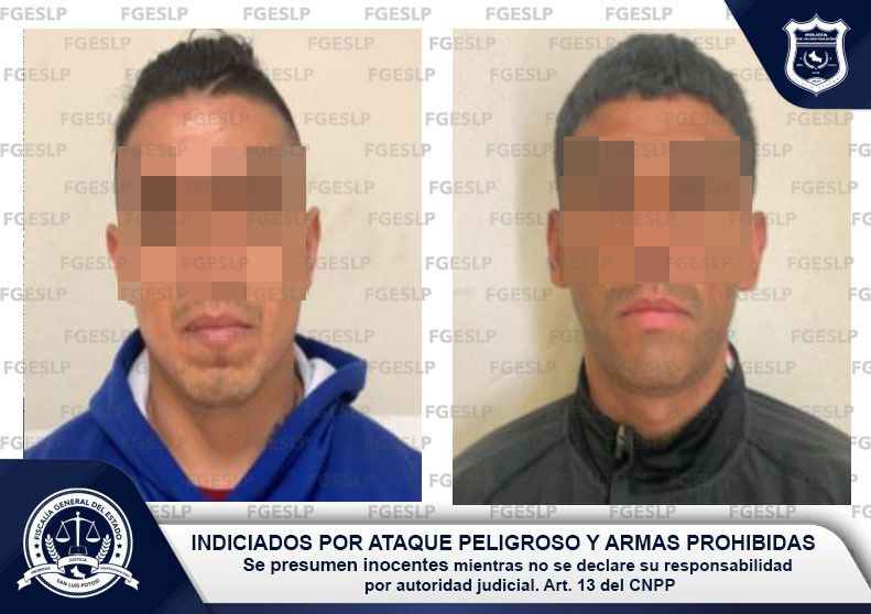 Mediante una orden aprehensión que se cumplimentó en colaboración con autoridades del Estado de Aguascalientes, se aseguraron a dos individuos por los probables delitos de ataque peligroso y armas prohibida, mismos que eran buscados por la Fiscalía General del Estado de San Luis Potosí (FGESLP).