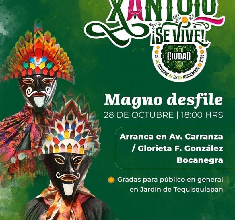 El Gobierno del Estado, a través de la Secretaría de Cultura (Secult), informó que, en el marco del Festival Xantolo en tu Ciudad, se tiene preparado el magno desfile en la capital potosina para este 28 de octubre, además de una representación en Soledad de Graciano Sánchez el domingo 29 y por primera vez una extensión el martes 31 de octubre en la ciudad de Zacatecas.