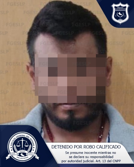 Probable responsable de un robo en una tienda de conveniencia fue detenido por los elementos de la Fiscalía General del Estado de San Luis Potosí (FGESLP) en la delegación La Pila.