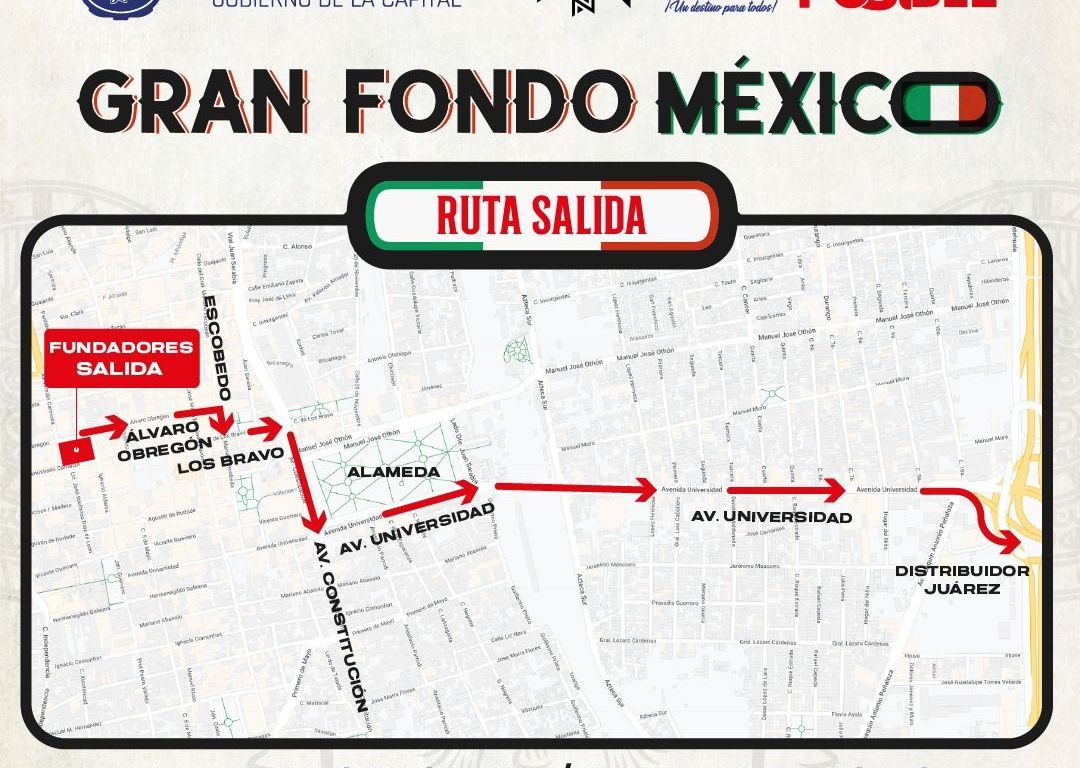 El Gran Fondo Nairo 2023 iniciará en punto de las 7:00 horas de este domingo 29 de octubre en calles del Centro Histórico de la Capital, con salida y meta en Plaza de los Fundadores. Desde este punto, las y los participantes en las rutas de 50 kilómetros, Medio Fondo y Gran Fondo se desplazarán por las calles Álvaro Obregón, Escobedo, Los Bravo, Eje Vial (todas ellas en sentido opuesto a la circulación) y Juan Sarabia en dirección a la Alameda.