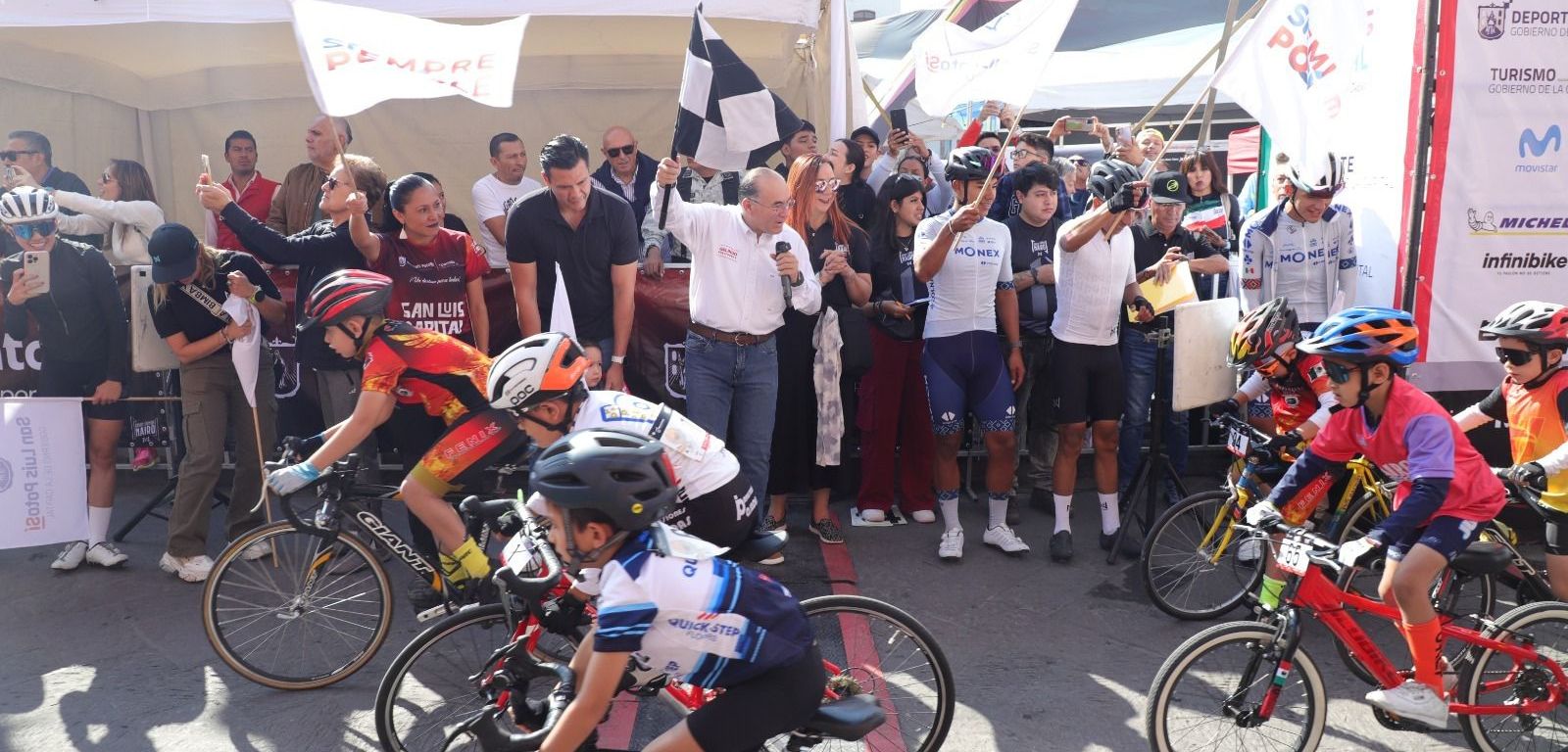 El Alcalde de la Capital, Enrique Galindo, acompañado por Nairo Quintana e Isaac del Toro, dieron el banderazo de salida a los niños que tomaron parte de la competencia.