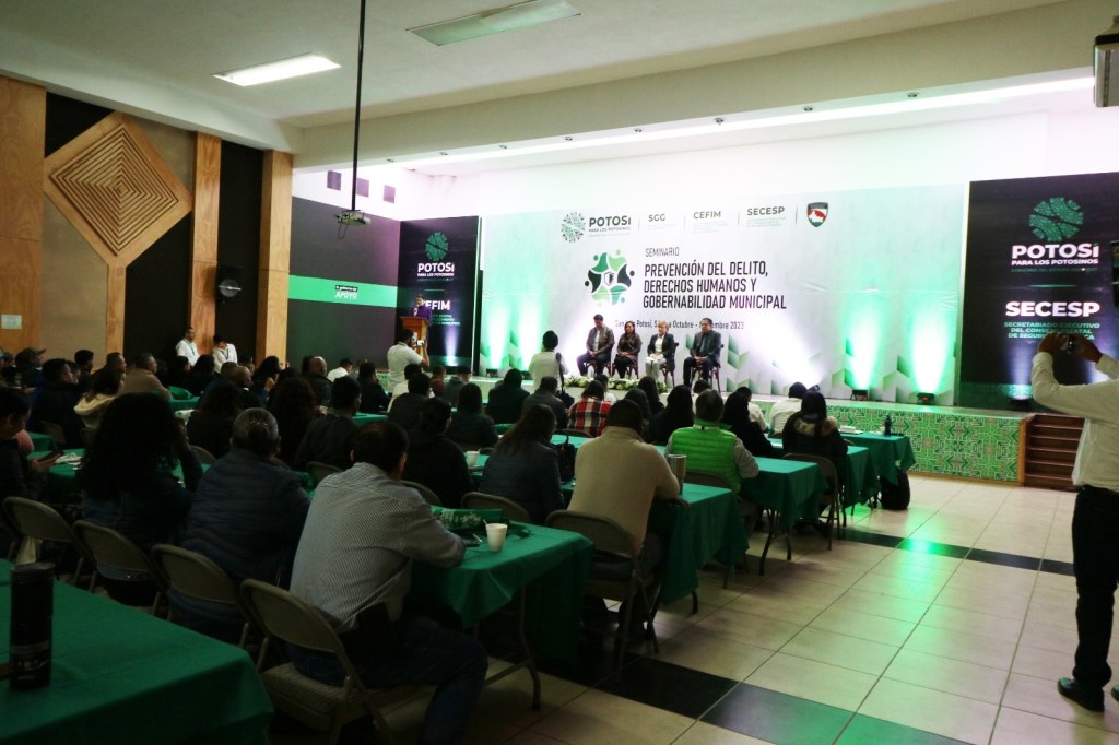 San Luis Potosí ya despegó en el fortalecimiento de los municipios para la construcción de la paz, con la capacitación de funcionarias y funcionarias de 42 municipios de las cuatro regiones, como parte del seminario “Prevención del Delito, Derechos Humanos y Gobernabilidad”.