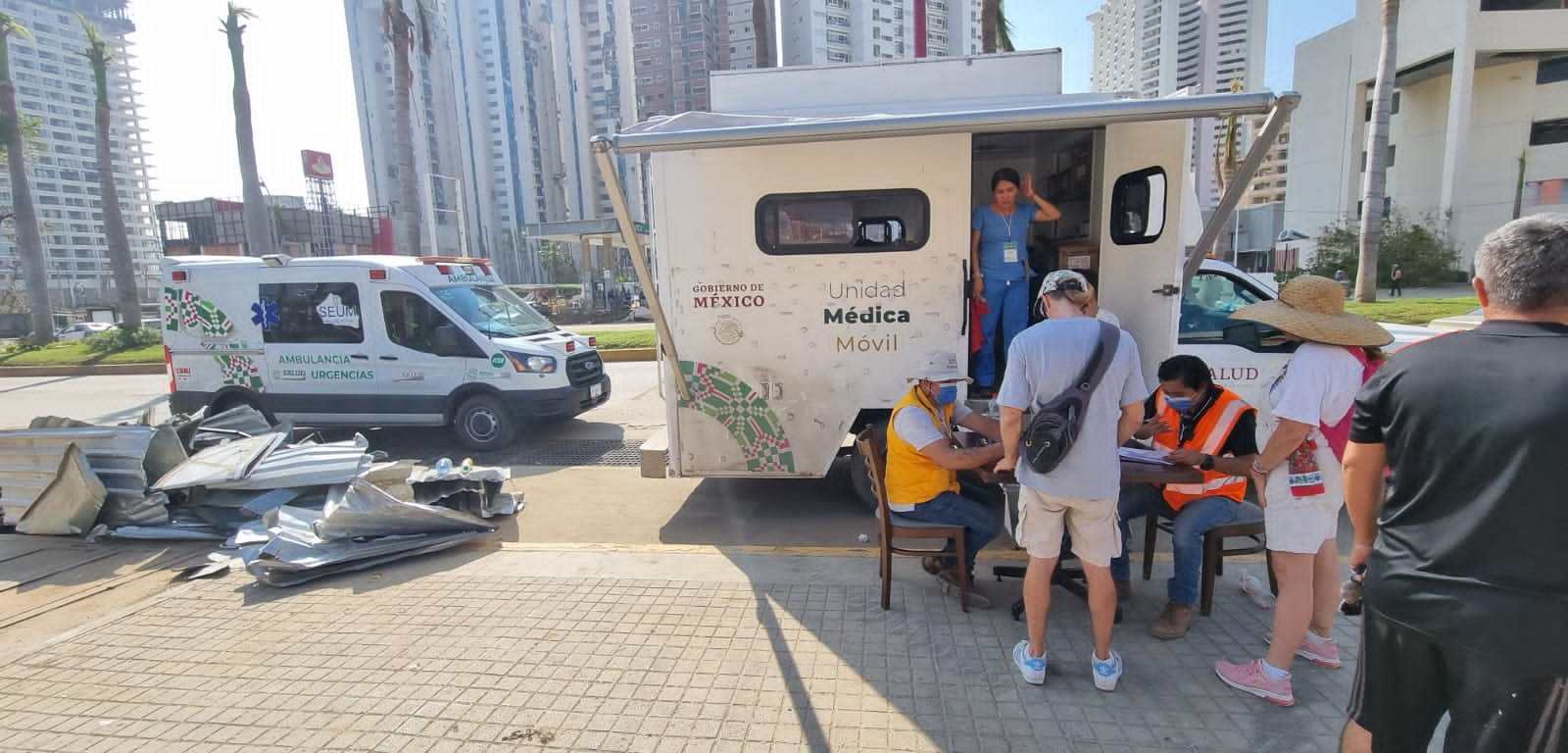 Durante dos días de acción en Acapulco, los cinco médicos, cinco enfermeras, dos paramédicos, tres personas promotoras de la Comisión Estatal para la Prevención Contra Riesgos Sanitarios (Coepris) y una de epidemiología, han apoyado a la población también al entregar alimentos no perecederos, insumos para aseo personal, así como plata coloidal y cloro, para prevenir riesgos sanitarios.