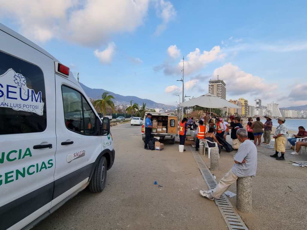 En apoyo a las familias afectadas por el paso del huracán Otis en Guerrero, desde su llegada la caravana de salud potosina ha atendido a más de 500 personas diariamente, quienes han recibido atención de parte del equipo médico, de enfermería, epidemiología y paramédico, enviado por el Gobierno Estatal.