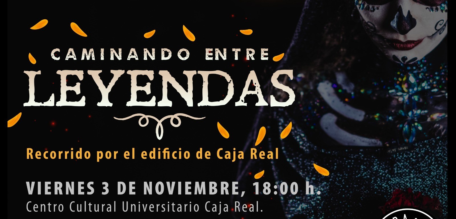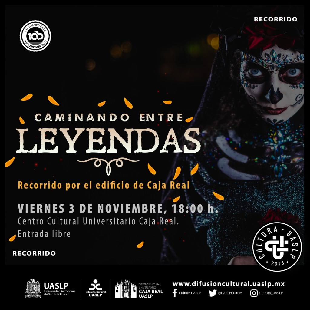 Para el viernes 03 de noviembre de 2023, se invita cordialmente al Recorrido por el Edificio de Caja Real, “Caminando entre Leyendas”; durante el recorrido por sus rincones, se contarán historias y anécdotas ocurridas en el inmueble y se invitará a las y los participantes a que cuenten sus experiencias sobrenaturales. El recorrido iniciará a las 18:00 horas. Entrada libre.