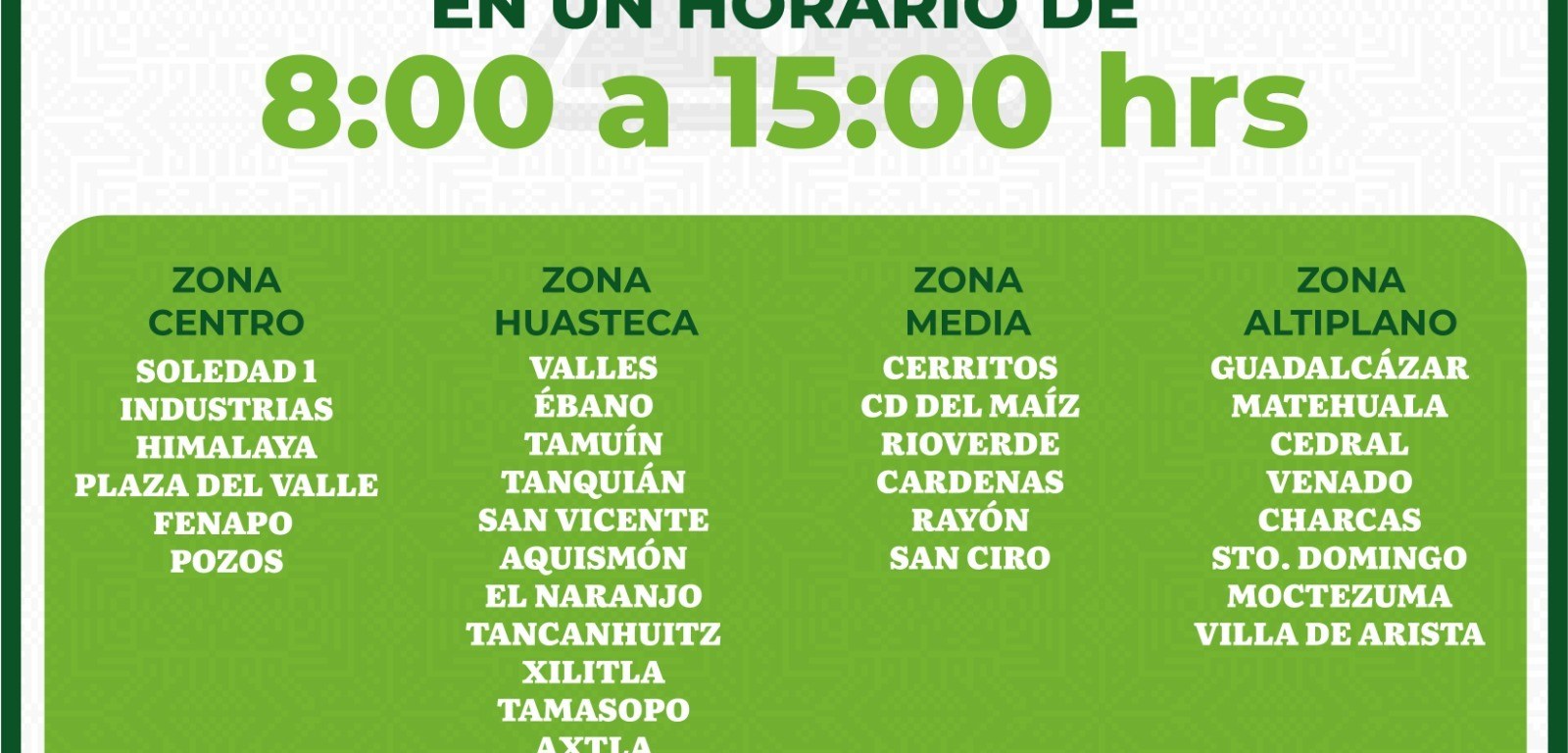 Finalmente, invitó a la ciudadanía a consultar los horarios y las recaudadoras que brindarán servicio en las cuatro regiones en: https://www.facebook.com/SLPFinanzas.