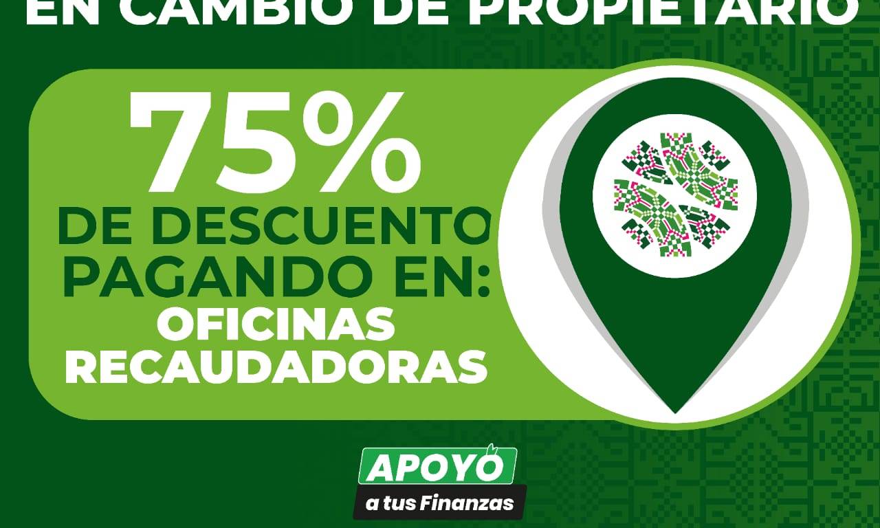 Asimismo, dio a conocer que el descuento en cambio de propietario será del 75 por ciento al realizar su trámite en las oficinas recaudadoras, por lo que, hizo un llamado a la población para que aproveche estos programas de descuentos. Para más información de lugares y horarios, podrán revisar el portal de la dependencia y las redes sociales oficiales.