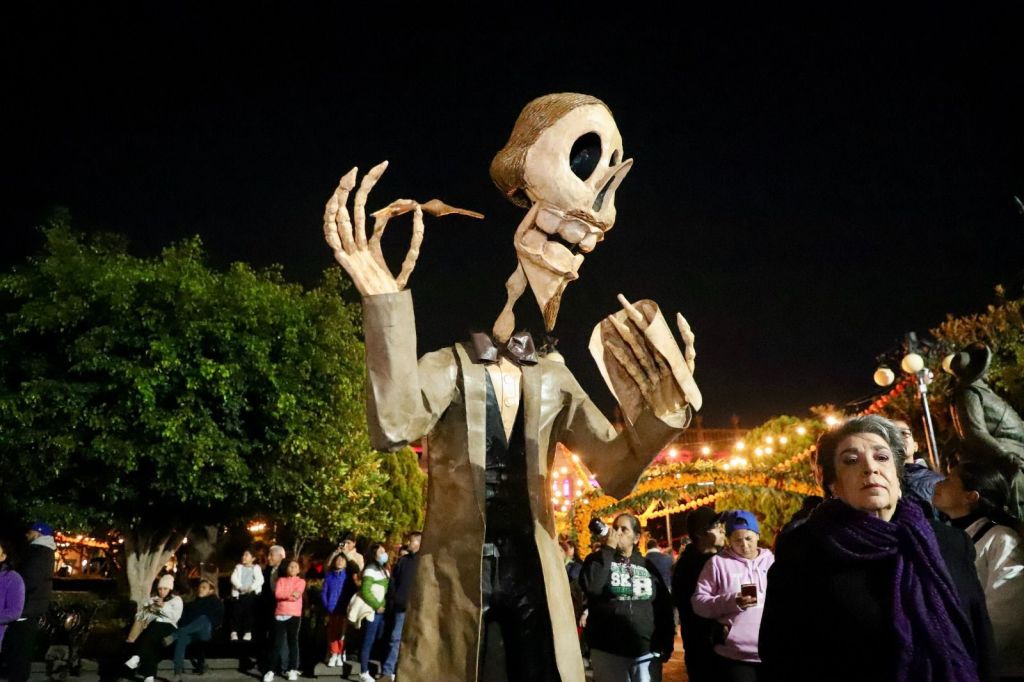 Posteriormente, los funcionarios y ciudadanos hicieron un recorrido por las 25 calaveras monumentales ubicadas en la Plaza de Armas y la arquería, que son producto del trabajo creativo de promotores culturales y ciudadanos, y con la enseñanza del maestro Felipe A. Arredondo.