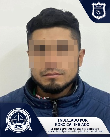La Fiscalía General del Estado de San Luis Potosí (FGESLP) dio a conocer que Juan Carlos “N” estaría relacionado en un robo con violencia de un cuentahabiente, a quien despojó con un arma de fuego la cantidad de 160 mil pesos y algunas pertenencias.