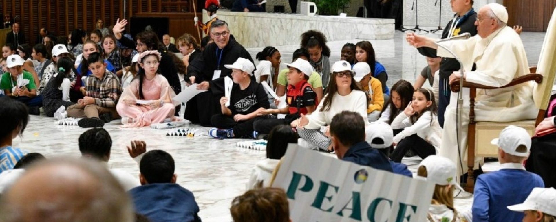 Hagamos una cosa: en silencio, saludemos a Rania y a todo el pueblo de su patria. Y que el pueblo de Palestina sepa que todos los niños han saludado. La paz es bella. Todos: ‘la paz es bella’. Gracias, Rania.