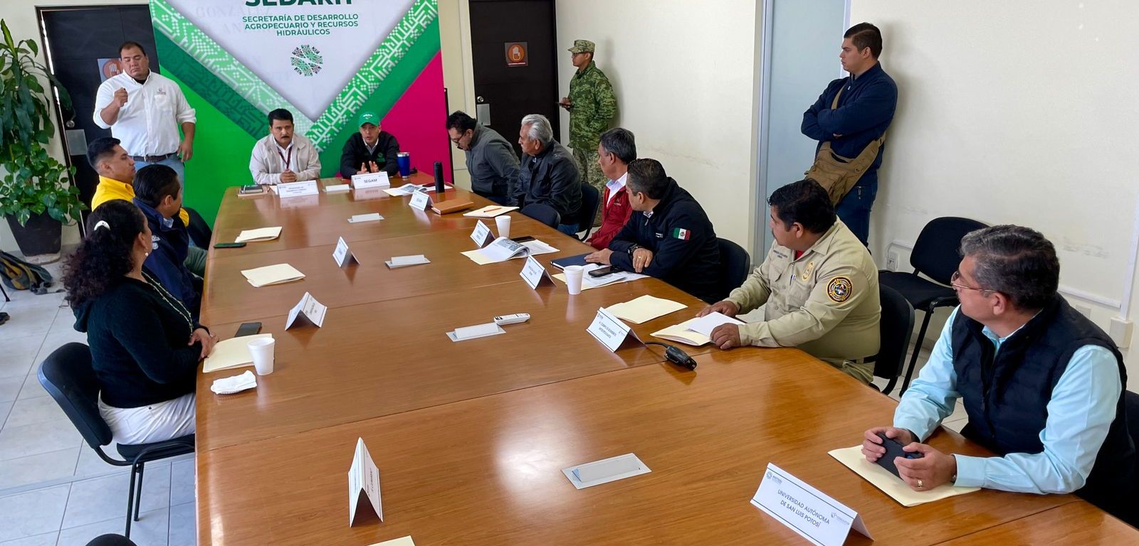 La reunión se llevó a cabo en la Secretaría de Desarrollo Agropecuario y Recursos Hidráulicos (Sedarh), al que acudieron Teodoro Morales Organista, titular de la Promotora de Desarrollo Forestal en San Luis Potosí de la Comisión Nacional Forestal (Conafor); Mauricio Ordaz Flores, director de la Coordinación Estatal de Protección Civil (CEPC); además de representantes de la Universidad Autónoma de San Luis Potosí (UASLP) y de la Secretaría de la Defensa Nacional (Sedena).
