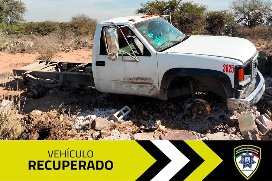 Encontrándose en patrullajes de seguridad y vigilancia sobre San Juanico Chico, los agentes municipales circulaban sobre calle San Juanico y vías Aguascalientes cuando visualizaron una camioneta marca Chevrolet tipo caja seca color blanco que se encontraba con claras huellas de desvalijamiento al no contar con los neumáticos, razón por la que detuvieron la unidad policial para inspeccionarla.