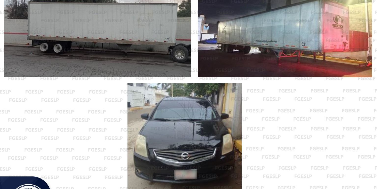 La Unidad de Robo de Vehículos de la Policía de Investigación (PDI) realizó el aseguramiento de dos cajas secas y un automotor en territorio potosino, informó la Fiscalía General del Estado de San Luis Potosí (FGESLP).