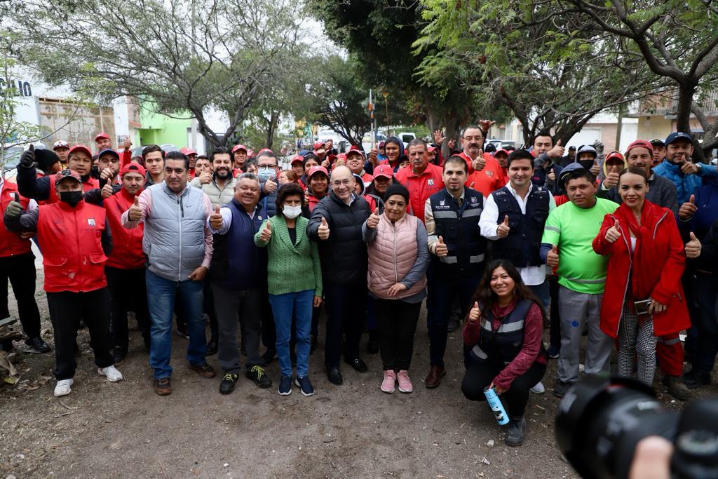 El Alcalde Enrique Galindo presenció el arranque de la jornada de limpieza y embellecimiento de la zona, con poda y faldeo de árboles, retiro de maleza y desechos sólidos, colocación de pintura, bacheo y revisión del correcto funcionamiento del alumbrado público, con mejoramiento de la iluminación.