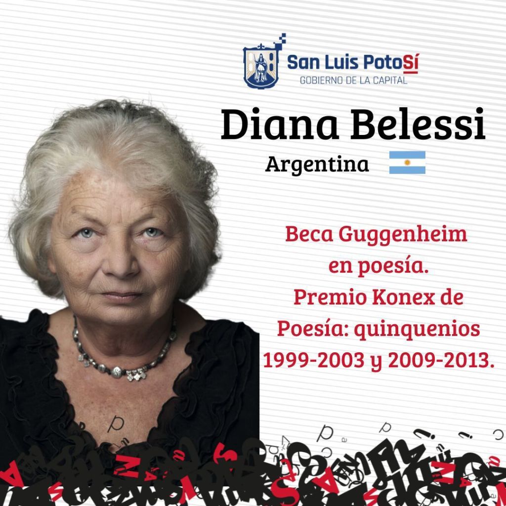 La lista de escritores invitados del XVI Festival Internacional Letras en San Luis incluye a Diana Belessi (Argentina, 1946), estudió filosofía en la Universidad Nacional del Litoral, y entre 1969-75 recorrió a pie el continente. Durante dos años coordinó talleres de escritura en las cárceles de Buenos Aires.