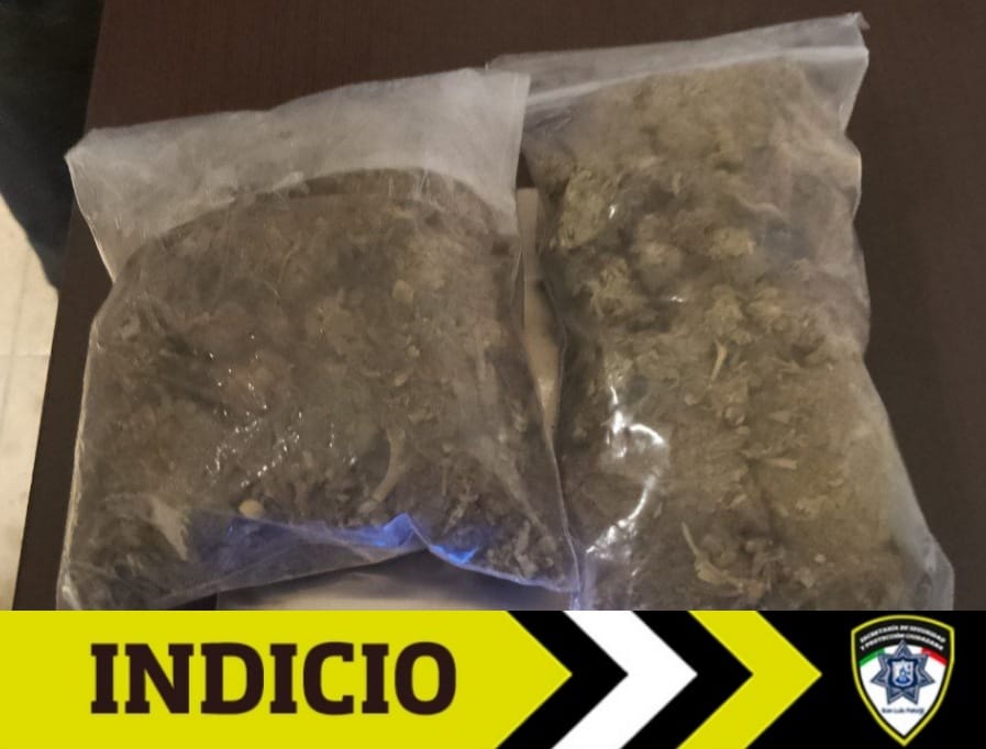 Un hombre y una mujer que viajaban a bordo de una motocicleta urbana en calles del fraccionamiento Valle Dorado, fueron detectados por oficiales de la Guardia Municipal de la Secretaría de Seguridad y Protección Ciudadana (SSPC) en posesión de dos bolsas con hierba seca verde con características de la marihuana, ello, en el marco del operativo Rastreador.