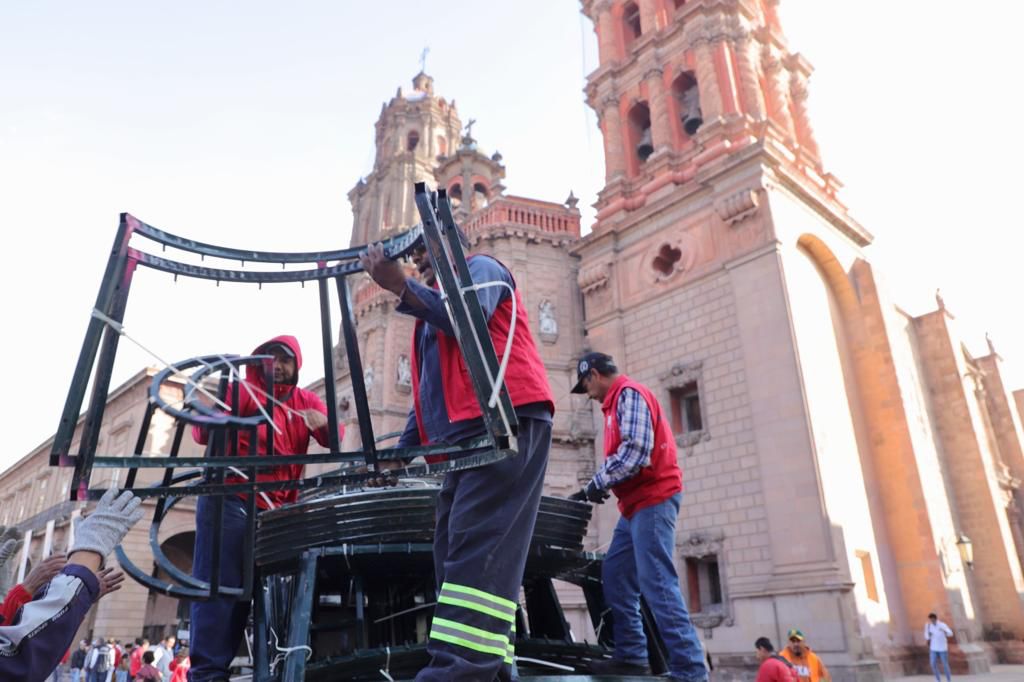 El Presidente Municipal de la Capital señaló que ya está instalándose la estructura del tradicional pino luminoso, que reviste la emblemática Plaza de Armas cada diciembre, en el corazón del Centro Histórico de San Luis Capital.
