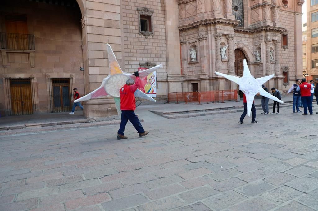 La iluminación se torna de colores porque, recordó el Alcalde Enrique Galindo, la ornamentación está basada en las tradicionales posadas, por lo que desde el quiosco hacia el Palacio Municipal, piñatas y elementos alusivos estarán decorando la plaza pública tan concurrida por el turismo local, nacional e internacional.