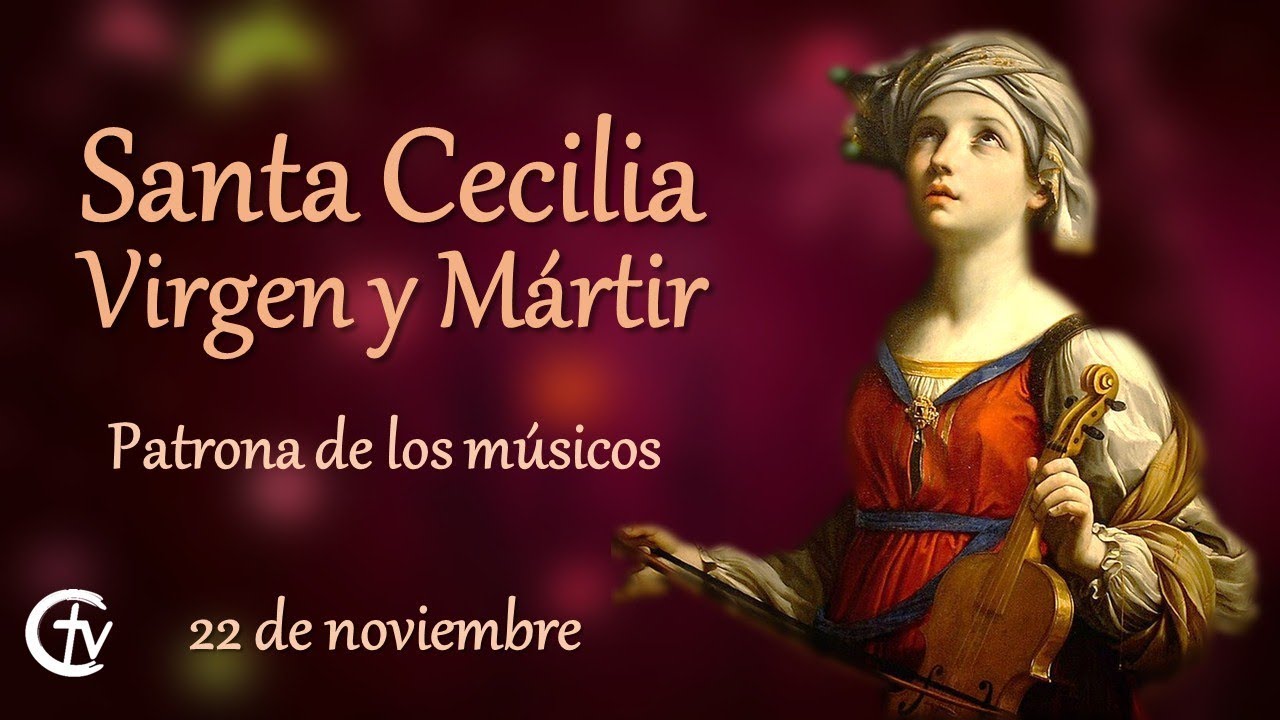 Durante más de mil años, Santa Cecilia ha sido una de las mártires de la primitiva Iglesia más veneradas por los cristianos. Su nombre figura en el canon de la misa. Las «actas» de la santa afirman que pertenecía a una familia patricia de Roma y que fue educada en él, cristianismo. Solía llevar un vestido de tela muy áspera bajo la túnica propia de su dignidad, ayunaba varios días por semana y había consagrado a Dios su virginidad. Pero su padre, que veía las cosas de un modo diferente, la casó con un joven patricio llamado Valeriano. El día de la celebración del matrimonio, en tanto que los músicos tocaban y los invitados se divertían, Cecilia se sentó en un rincón a cantar a Dios en su corazón y a pedirle que la ayudase. Cuando los jóvenes esposos se retiraron a sus habitaciones, Cecilia, armada de todo su valor, dijo dulcemente a su esposo: «Tengo que comunicarte un secreto. Has de saber que un ángel del Señor vela por mí. Si me tocas como si fuera yo tu esposa, el ángel se enfurecerá y tú sufrirás las consecuencias; en cambio sí me respetas, el ángel te amará como me ama a mí.» Valeriano replicó: «Muéstramelo. Si es realmente un ángel de Dios, haré lo que me pides.» Cecilia le dijo: «Si crees en el Dios vivo y verdadero y recibes el agua del bautismo verás al ángel.» Valeriano accedió y fue a buscar al obispo Urbano, quien se hallaba entre los pobres, cerca de la tercera mojonera de la Vía Apia. Urbano le acogió con gran gozo. Entonces se acercó un anciano que llevaba un documento en el que estaban escritas las siguientes palabras: «Un solo Señor, un solo bautismo, un solo Dios y Padre de todos, que está por encima de todo y en nuestros corazones.» Urbano preguntó a Valeriano: «¿Crees esto?» Valeriano respondió que sí y Urbano le confirió el bautismo. Cuando Valeriano regresó a donde estaba Cecilia, vio a un ángel de pie junto a ella. El ángel colocó sobre la cabeza de ambos una guirnalda de rosas y lirios. Poco después llegó Tiburcio, el hermano de Valeriano y los jóvenes esposos le ofrecieron una corona inmortal si renunciaba a los falsos dioses. Tiburcio se mostró incrédulo al principio y preguntó: » ¿Quién ha vuelto de más allá de la tumba a hablarnos de esa otra vida?» Cecilia le habló largamente de Jesús. Tiburcio recibió el bautismo, y al punto vio muchas maravillas.