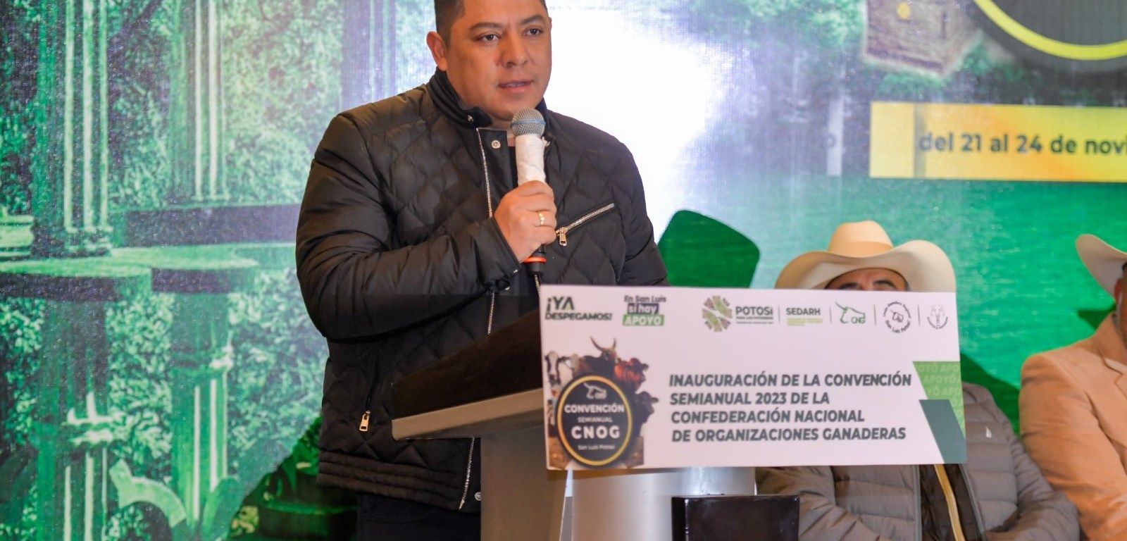 Ante 300 líderes ganaderos del país e integrantes de la Confederación Nacional de Organizaciones Ganaderas (Conag), congregados en San Luis Potosí, el Gobernador Ricardo Gallardo Cardona, ratificó su compromiso de apoyo a pequeños y grandes productores agropecuarios, para hacer posible un México sustentable, tras resaltar la importancia de esta industria que alimenta al país, y que consolidará la autosuficiencia alimentaria de las y los mexicanos.