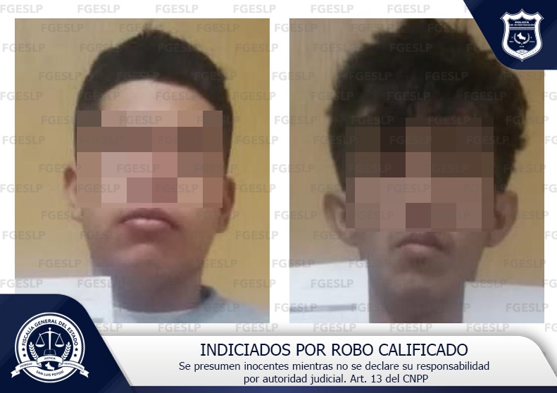 Dos sujetos señalados como objetivos criminales por robo calificado en la Capital potosina, fueron detenidos mediante una orden de aprehensión por la Policía de Investigación (PDI), informó la Fiscalía General del Estado de San Luis Potosí (FGESLP).