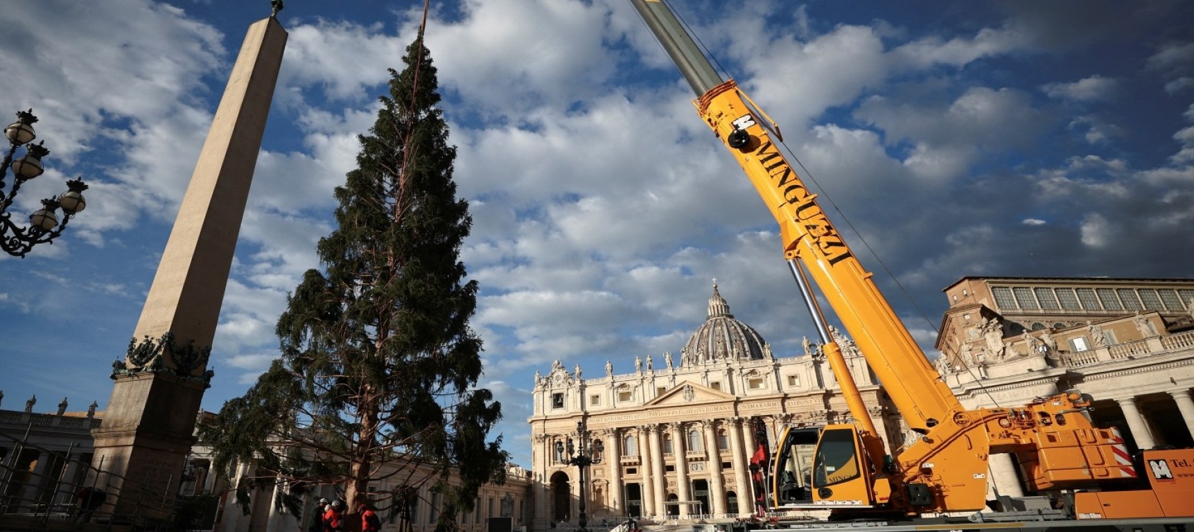 El árbol de Navidad del Alto Valle del Maira, en el municipio piamontés de Macra, en la provincia de Cúneo, ha sido izado esta mañana, jueves 23 de noviembre, en la Plaza de San Pedro. El árbol, un abeto de 28 metros de altura y 65 quintales de peso, partió hacia Roma el martes 21 de noviembre a bordo de un transporte excepcional facilitado gratuitamente por la empresa Viberti.