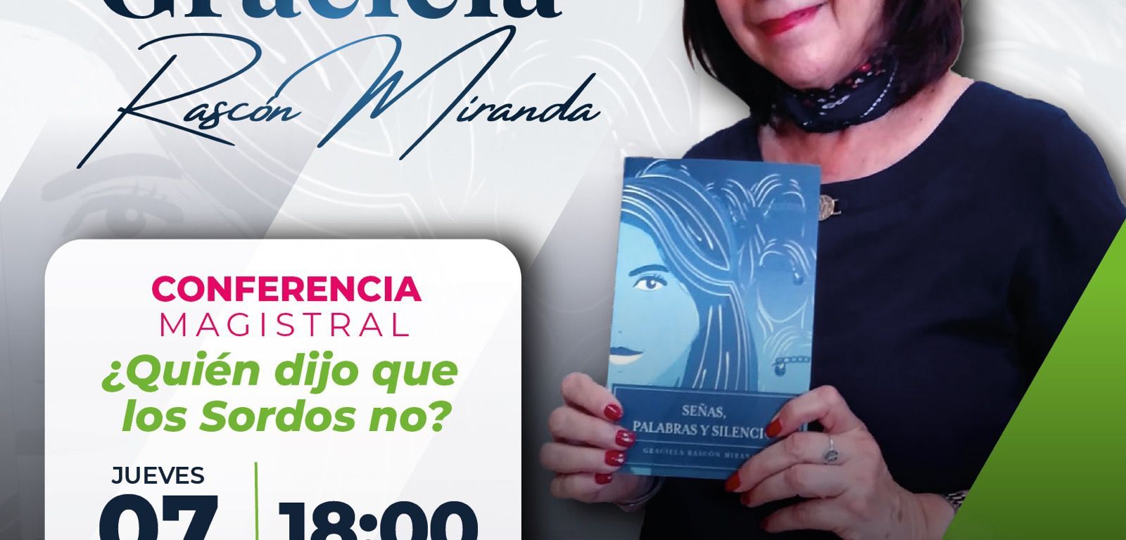 En el marco del Día Internacional de la Discapacidad, que se conmemora cada 3 de diciembre, y en apoyo de la inclusión, el Sistema Estatal para el Desarrollo Integral de la Familia (DIF), realizará el jueves 07 de diciembre en el Centro de Convenciones, la conferencia «¿Quién dijo que los sordos no?», impartida por Graciela Tomasa Rascón Miranda, la primera persona sorda en México que escribe por sí misma y publica un libro autobiográfico.