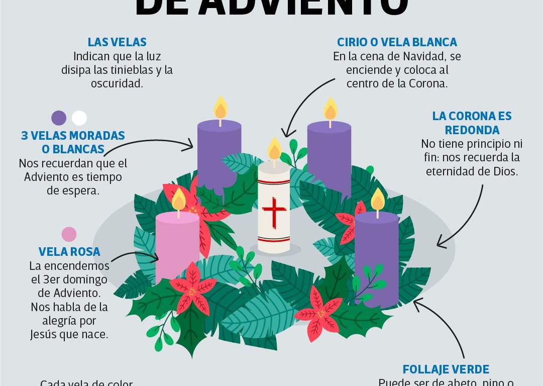 La Corona de Adviento nos recuerda que debemos prepararnos espiritualmente para recibir al Niño Dios en nuestra casa, consta de varios elementos, cada uno con su significado. A continuación te los explicamos: