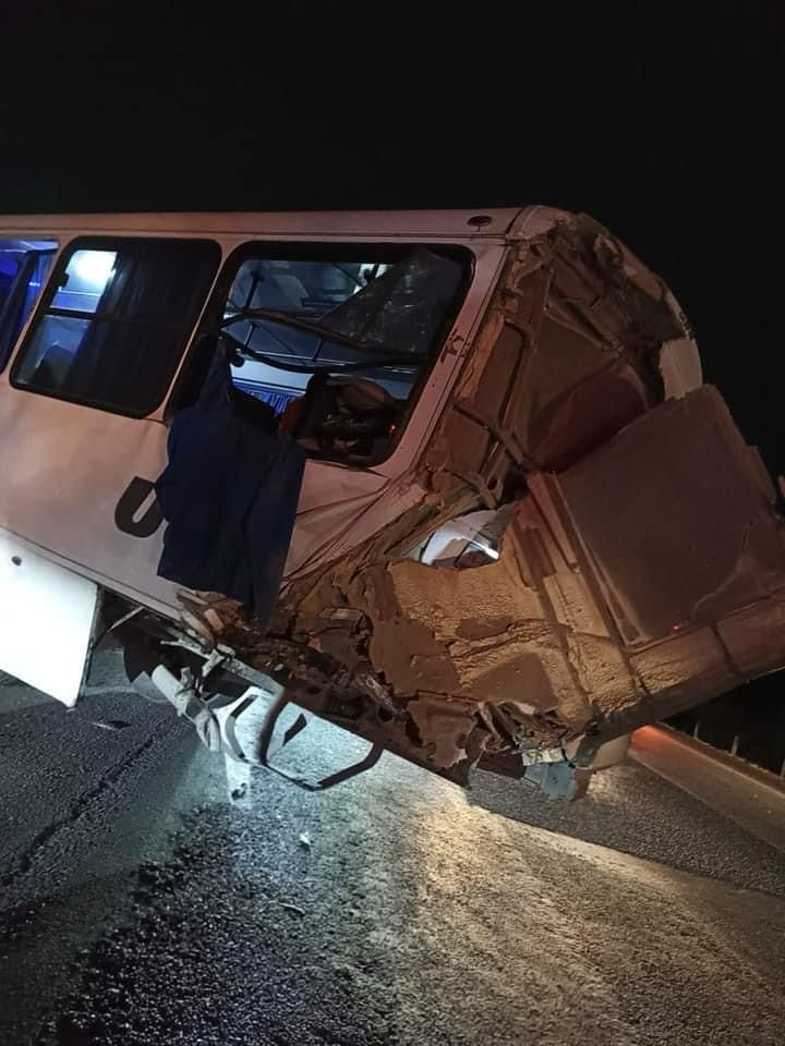 Se presume que uno de los conductores se quedó dormido mientras manejaba la unidad de transporte de personal y choco contra su similar que transitaba en el carril contrario.
