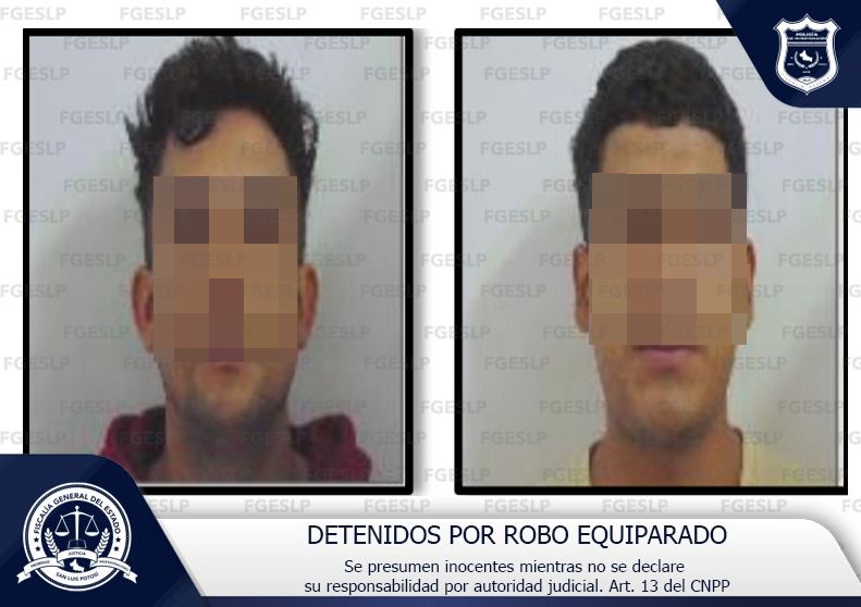 En flagrancia del delito de robo equiparado, fueron detenidos dos individuos en Soledad de Graciano Sánchez, informó la Fiscalía General del Estado de San Luis Potosí (FGESLP).