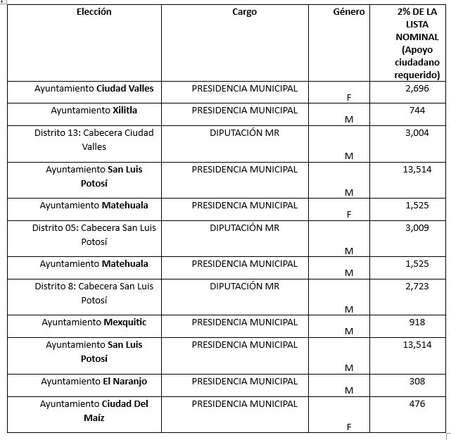 El Consejo Estatal Electoral y de Participación Ciudadana de San Luis Potosí CEEPAC, informa que el pasado 30 de noviembre concluyó el plazo de registro para las personas que aspiran a registrarse en una candidatura independiente para participar en el Proceso Electoral Local 2024.