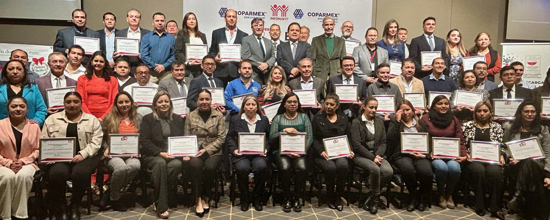 En el evento también se reconoció a 64 empleadores y empleadores con el reconocimiento Empresas de Diez, luego que cumplen con sus obligaciones patronales y tienen un excelente comportamiento fiscal y jurídico con el Infonavit.