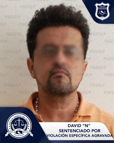 La Fiscalía General del Estado de San Luis Potosí (FGESLP) obtuvo una sentencia condenatoria de 14 años 6 meses de prisión en contra del acusado David «N», tras ser declarado penalmente responsable por el delito de violación específica agravada.