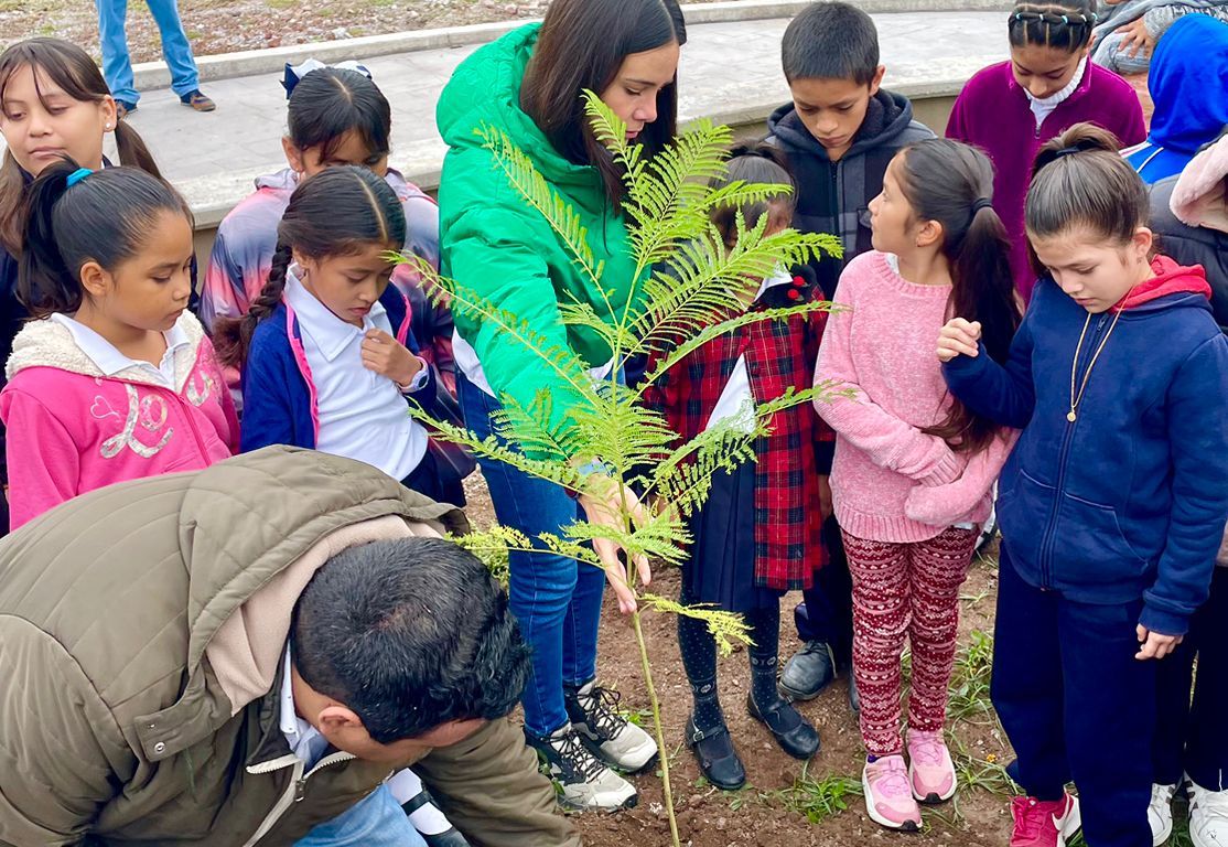 En el evento, la funcionaria y los estudiantes hicieron el trasplante de ejemplares de jacaranda (jacarandae mimosifolia), para un total de 100 árboles plantados, con un mensaje sobre su cuidado, cultivo y aprovechamiento a futuro, como lo establece el Plan Estatal de Desarrollo 2021-2027 en su eje Campo Sustentable.