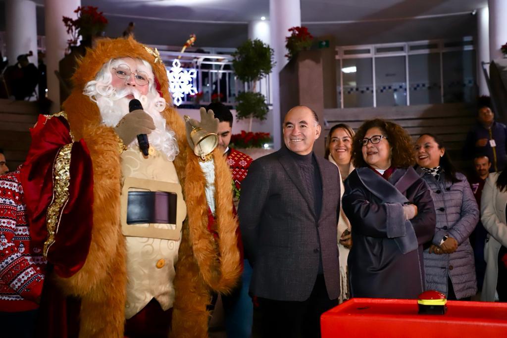 La Presidenta del DIF Capitalino, Estela Arriaga Márquez, encendió junto con el Alcalde, Enrique Galindo Ceballos, el Árbol Navideño ubicado en el patio central de la Unidad Administrativa Municipal, lo que dio pie al arranque de entrega de juguetes a niñas y niños en situación vulnerable.