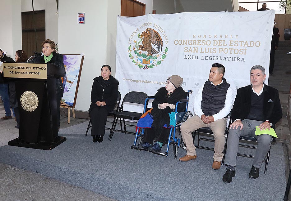 La diputada Bernarda Reyes Hernández dijo que, “Arte Potosino en tu Congreso”, nace con el objetivo de visibilizar la obra de artistas potosinos, a través de la exposición, promoción y difusión de sus trabajos, los cuales nacen de la inspiración de la vida diaria en sus comunidades.