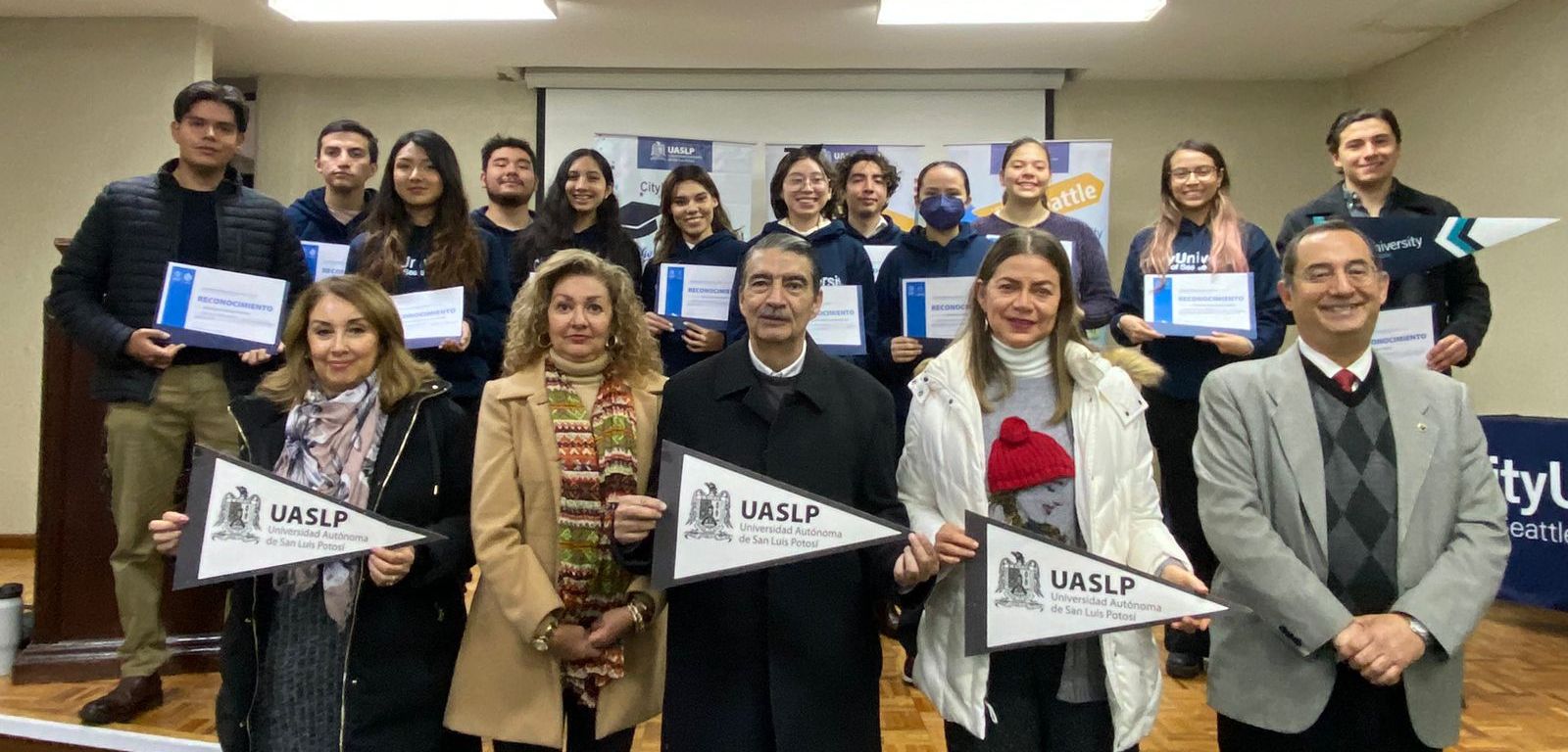 El rector de la Universidad Autónoma de San Luis Potosí, Dr. Alejandro Zermeño Guerra, entregó becas a 12 alumnos de excelencia de la institución para que puedan cursar una segunda carrera en City University of Seattle.