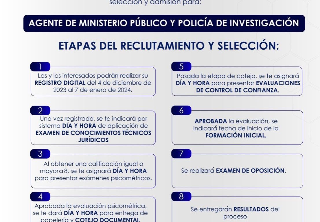 La Fiscalía General del Estado de San Luis Potosí (FGESLP) da a conocer la convocatoria 2024 para ingresar al ente autónomo como agentes del Ministerio Público y Policías de Investigación.