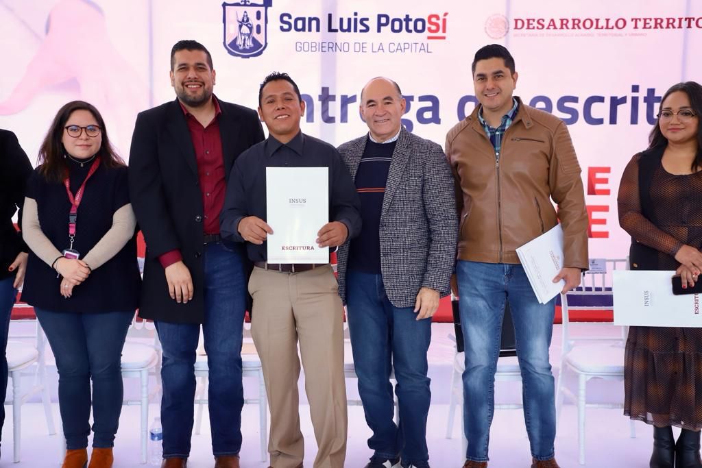 A través de un convenio con el Instituto Nacional de Suelo Sustentable (Insus), el Gobierno Municipal de San Luis Capital dio hoy un ansiado regalo de Navidad a los habitantes de la colonia Los Limones “Calabacillas”: la entrega de las escrituras de sus casas, lo que pone fin a hasta 20 años de incertidumbre jurídica en que vivieron centenares de familias.