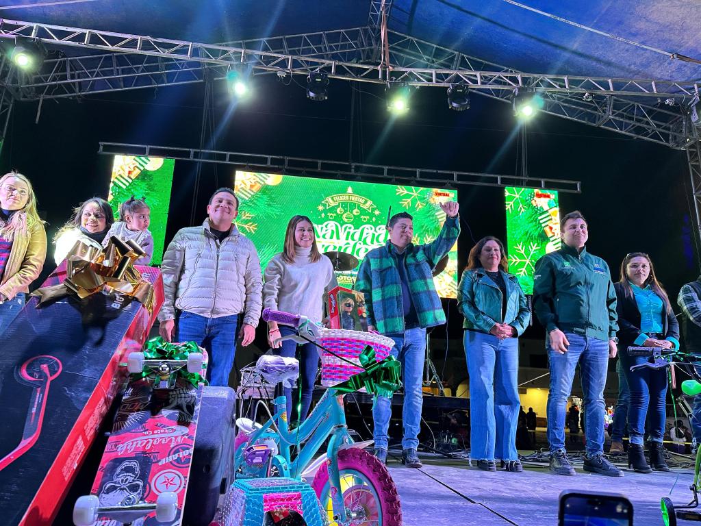 Gallardo Cardona, acompañado de la presidenta del Sistema estatal para el Desarrollo Integral de la Familia (DIF) Ruth González Silva y miembros de su gabinete, expresó a las familias del Altiplano que el próximo año, será todavía mejor para todas y todos, “por eso deseo para ustedes y sus familias todo lo mejor en esta Navidad y que el 2024 venga con más apoyos”.