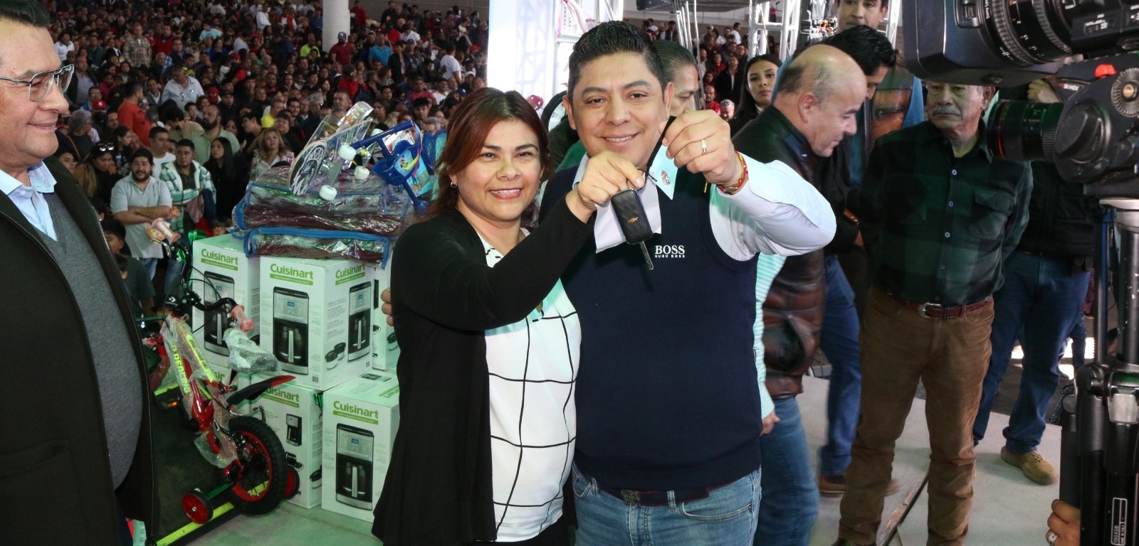 Durante la posada navideña se rifó un automóvil último modelo, tres concesiones; además de pantallas y electrodomésticos, así como la entrega de cobijas y juguetes para las hijas e hijos de las y los trabajadores del volante.