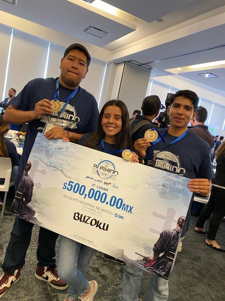 El tercer lugar lo obtiene el equipo integrado por: Daniela López Reyna, Jorge Fabián López, Emilio Rivera Sánchez; todos asesorados por el Dr. José Jimmy Jaime Rodríguez, del equipo BUZOKU y su premio consistió en 500 mil pesos en equipamiento.